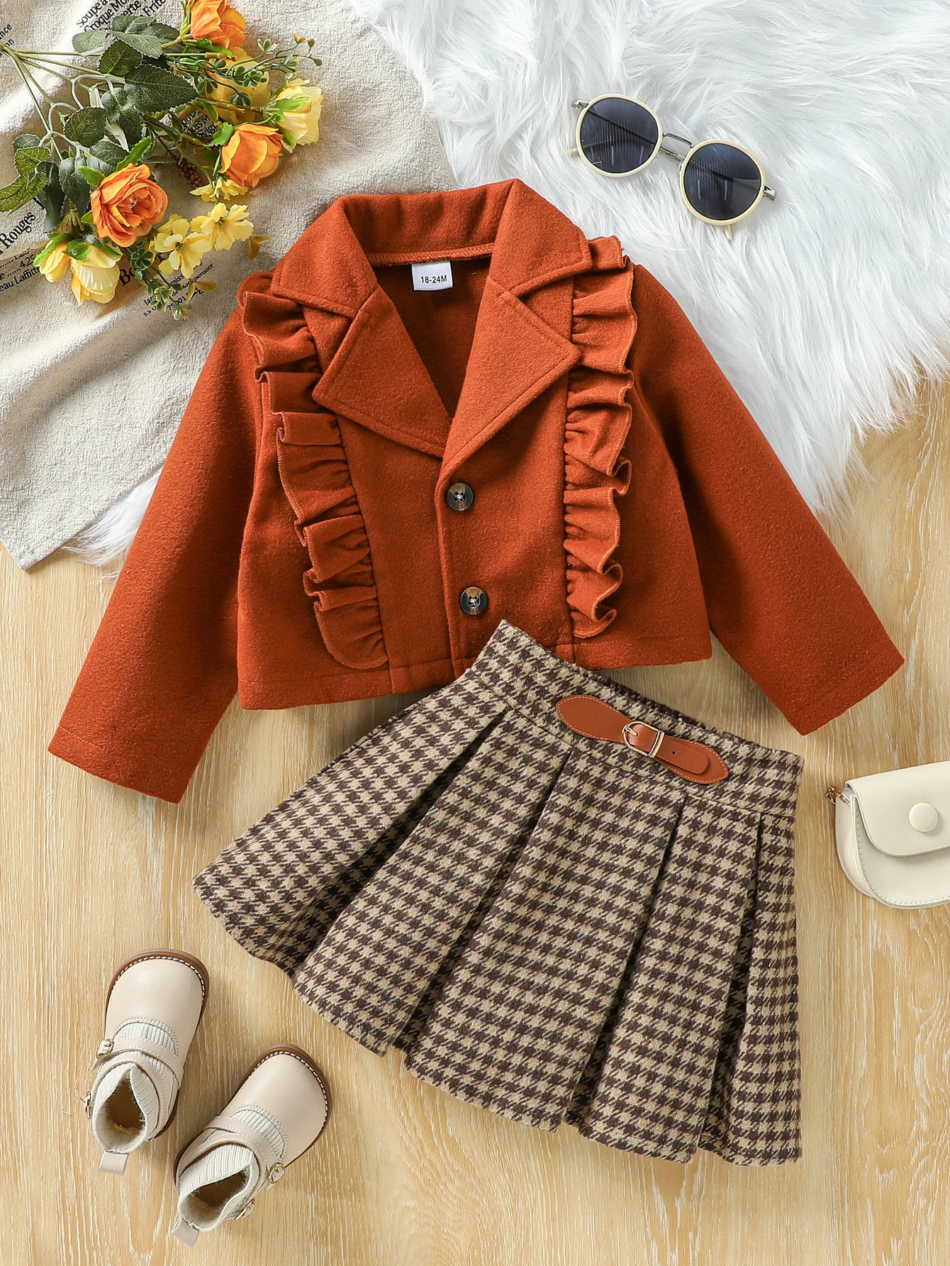 2025 Kids Autumn Winter Suit For Girls Collar Blazer Coat And Skirts 2Pcs Children's Elegant Outfits For 1-7Y Fashion Set